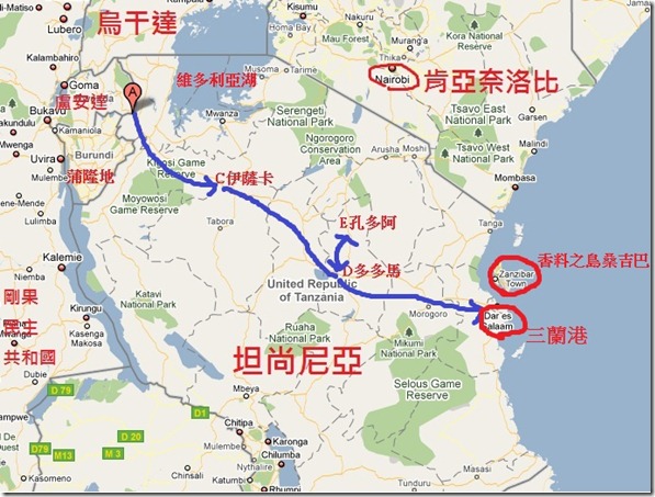 坦尚尼亞人口三千四百五十萬,國土面積廣達九十四萬三千平方公里(約台灣的二十六倍大)。入境後,我打算一路東行至印度洋上的著名旅遊景點,香料之島桑吉巴(Zanzibar Island)。(參閱:待續)